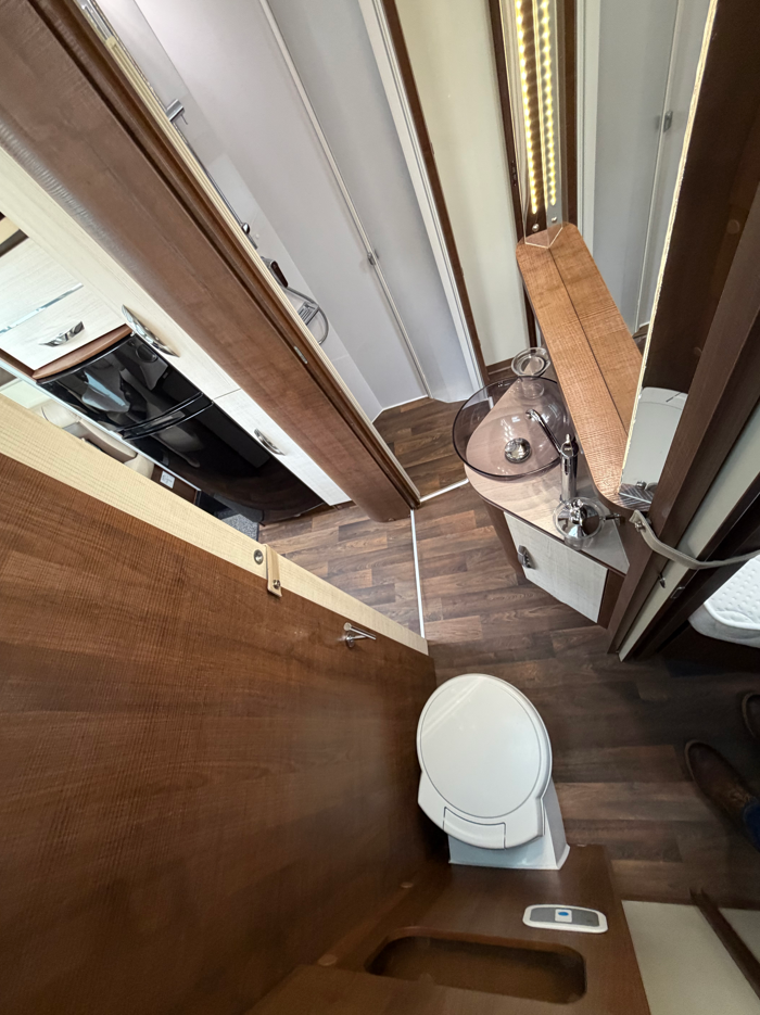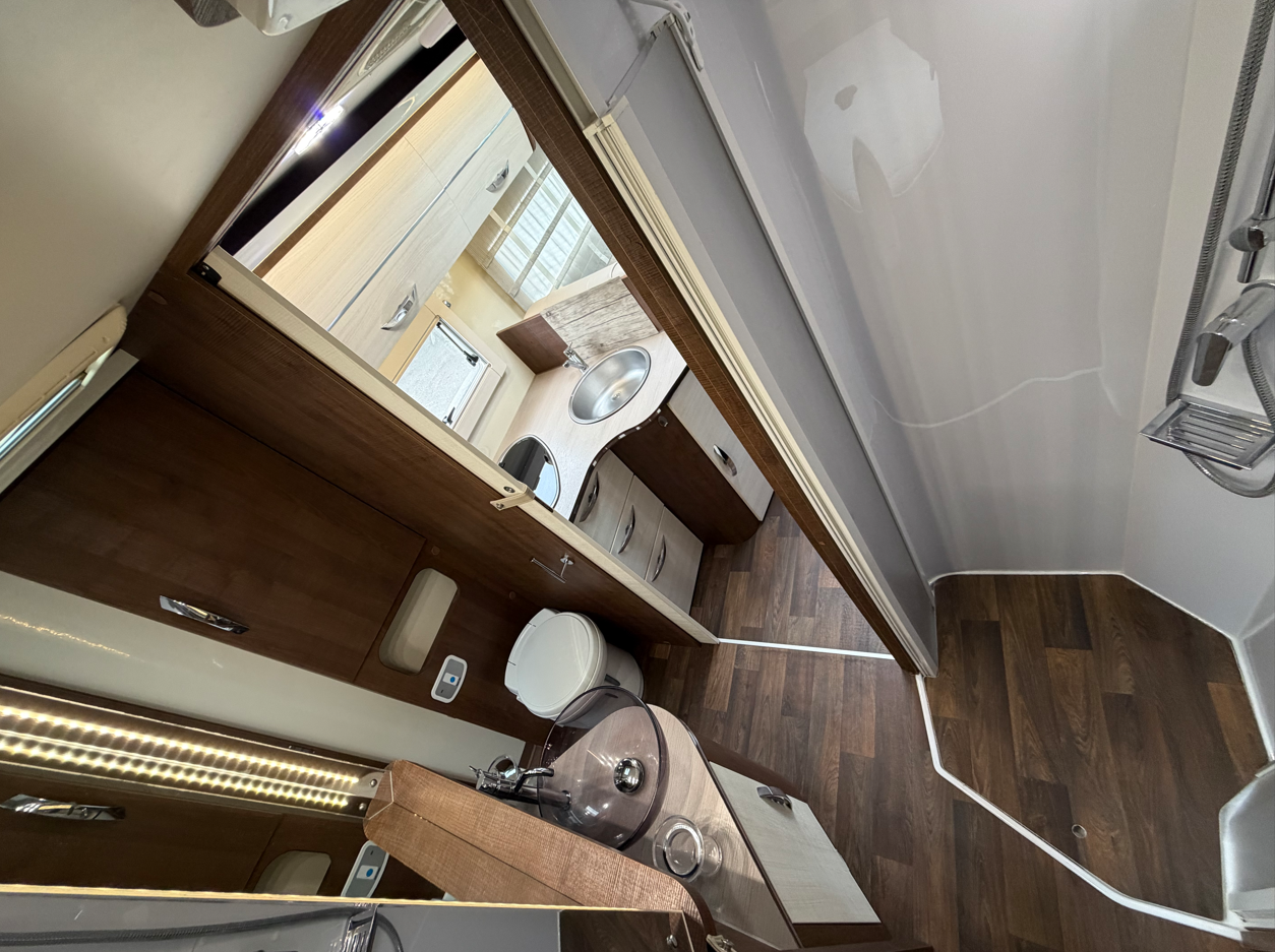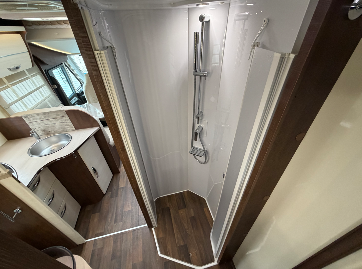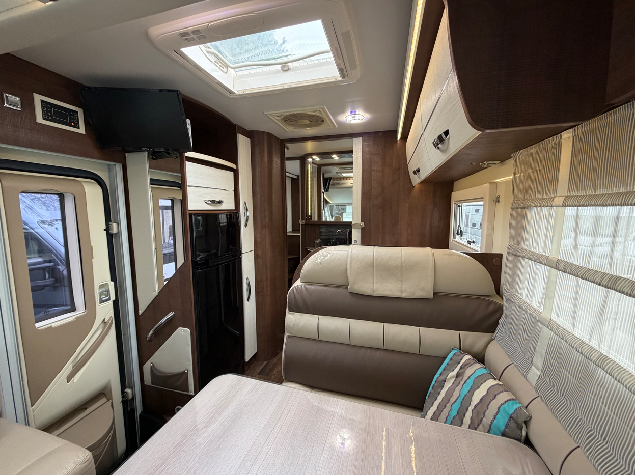 Camping Car Intégral avec lit central + Lit pavillon + Lit dinette, Dinette modulable 5 places, Grande Salle de bain centrale avec grande douche et WC à cassette, Chauffe eau + chauffage combi TRUMA 6 gaz et 220v , Nombreux rangements, Evier, Cuisine avec feux 3 gaz, Ouvrants avec moustiquaires + stores, Grand frigo avec freezeur, Store extérieur, Panneau solaire, Antenne satellite automatique avec TV, Attelage, Renforts de suspensions av+ar Sumosprings , Station multimédia avec Caméra de recul, Duo control gaz, Turbo vent, 2 Batteries cellule…