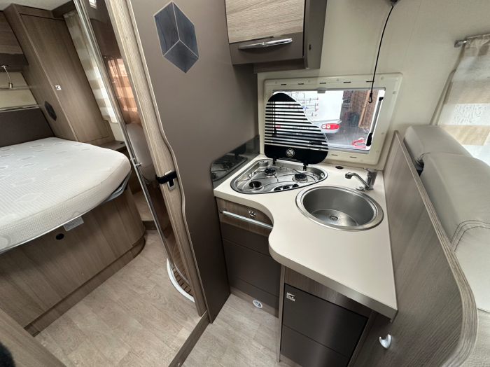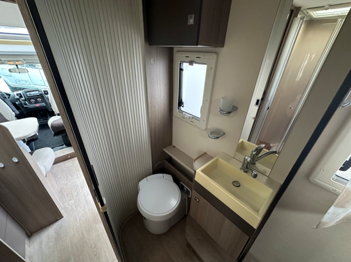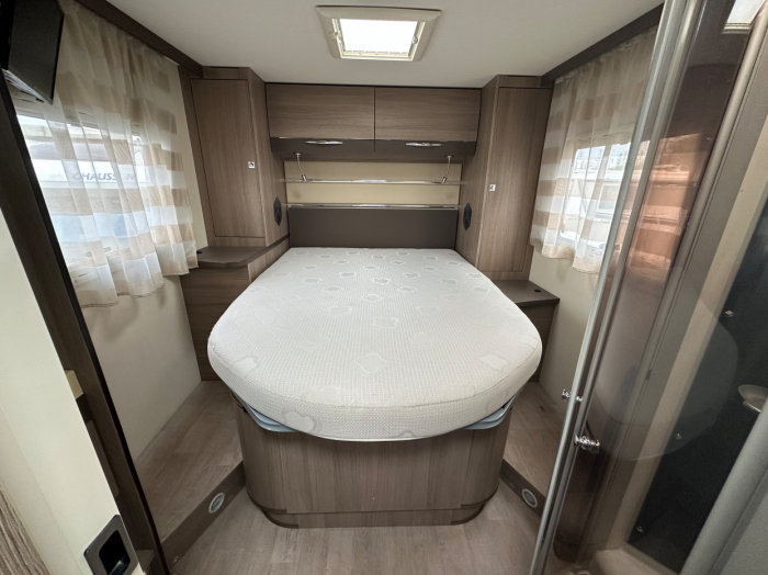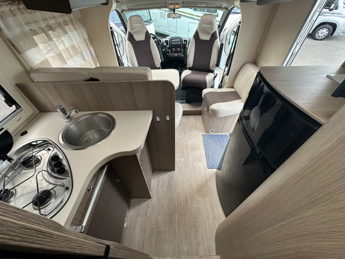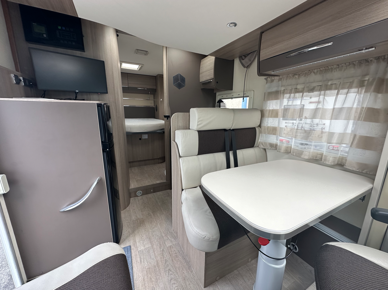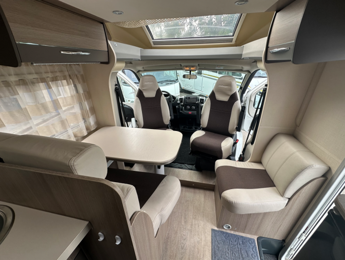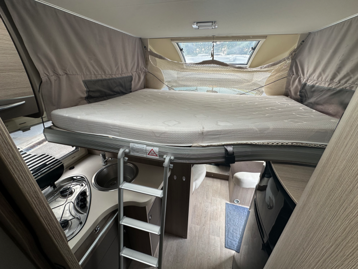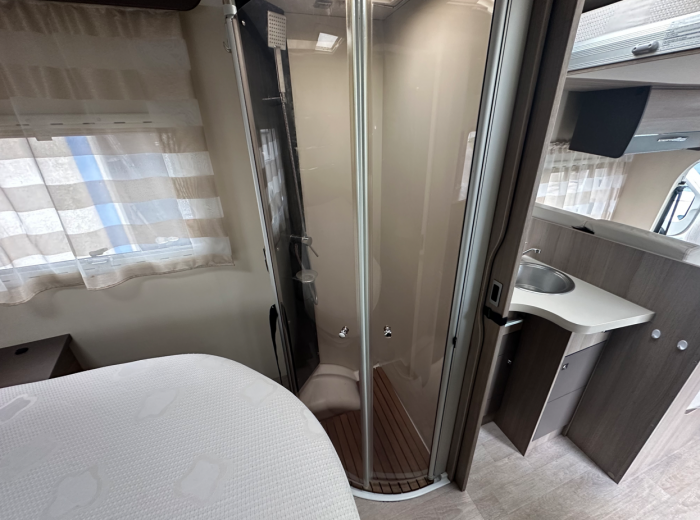 Camping Car profilé avec lit central arriere + lit pavillon, Dinette modulable 5 places, Sièges avants pivotants, Salle de bain avec grande douche et WC à cassette séparés, Chauffe eau + chauffage combi TRUMA gasoil , Nombreux rangements, Evier, Cuisine avec feux 3 gaz, Moustiquaires + stores Sncf, Grand frigo avec freezeur, Store extérieur avec bandeau LED, Panneau solaire, Antenne satellite automatique avec 2 TV, Station multimédia, porte vélos (4), prise gaz extérieur, Caméra de recul…