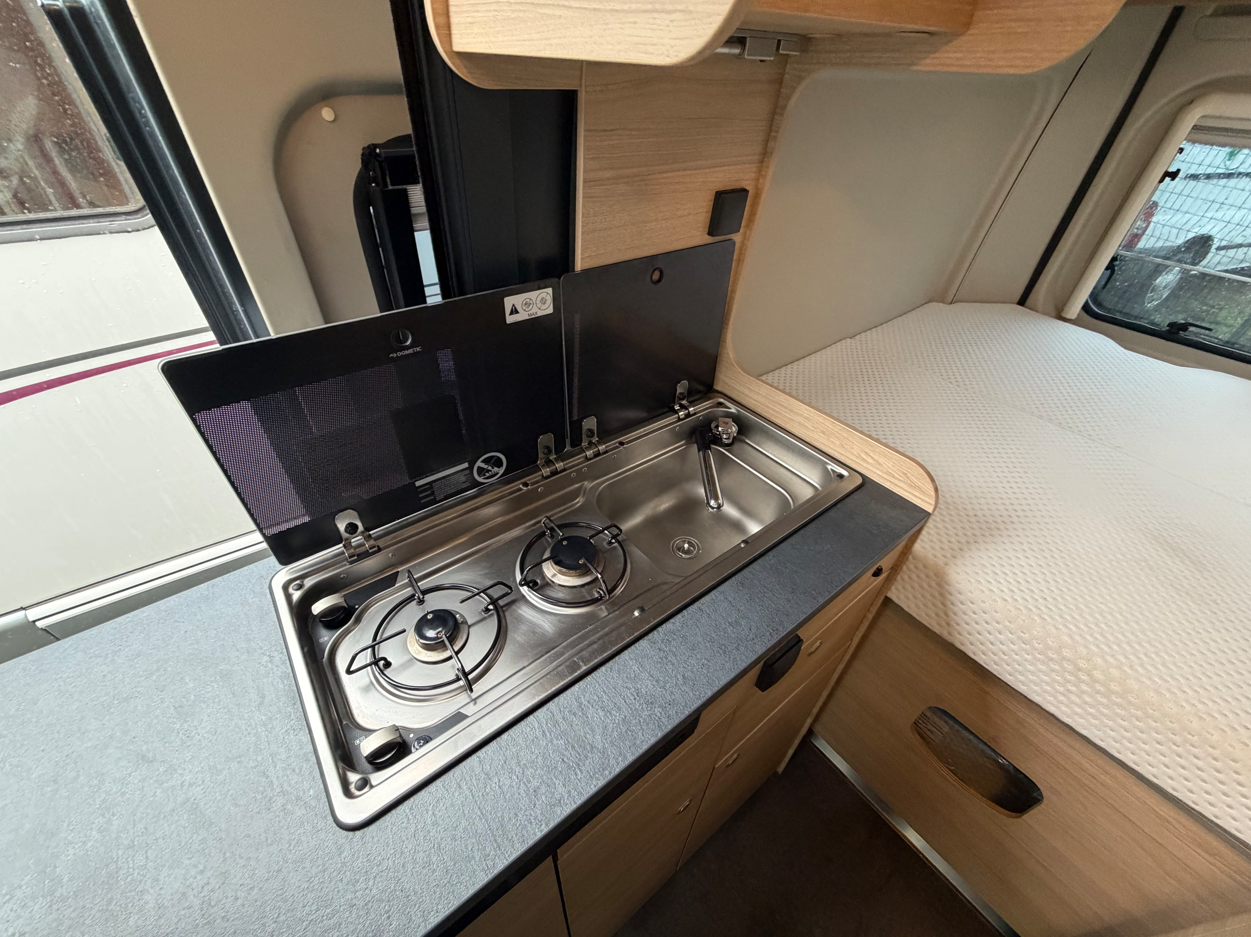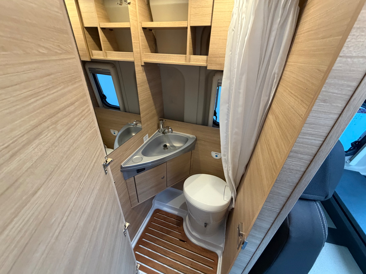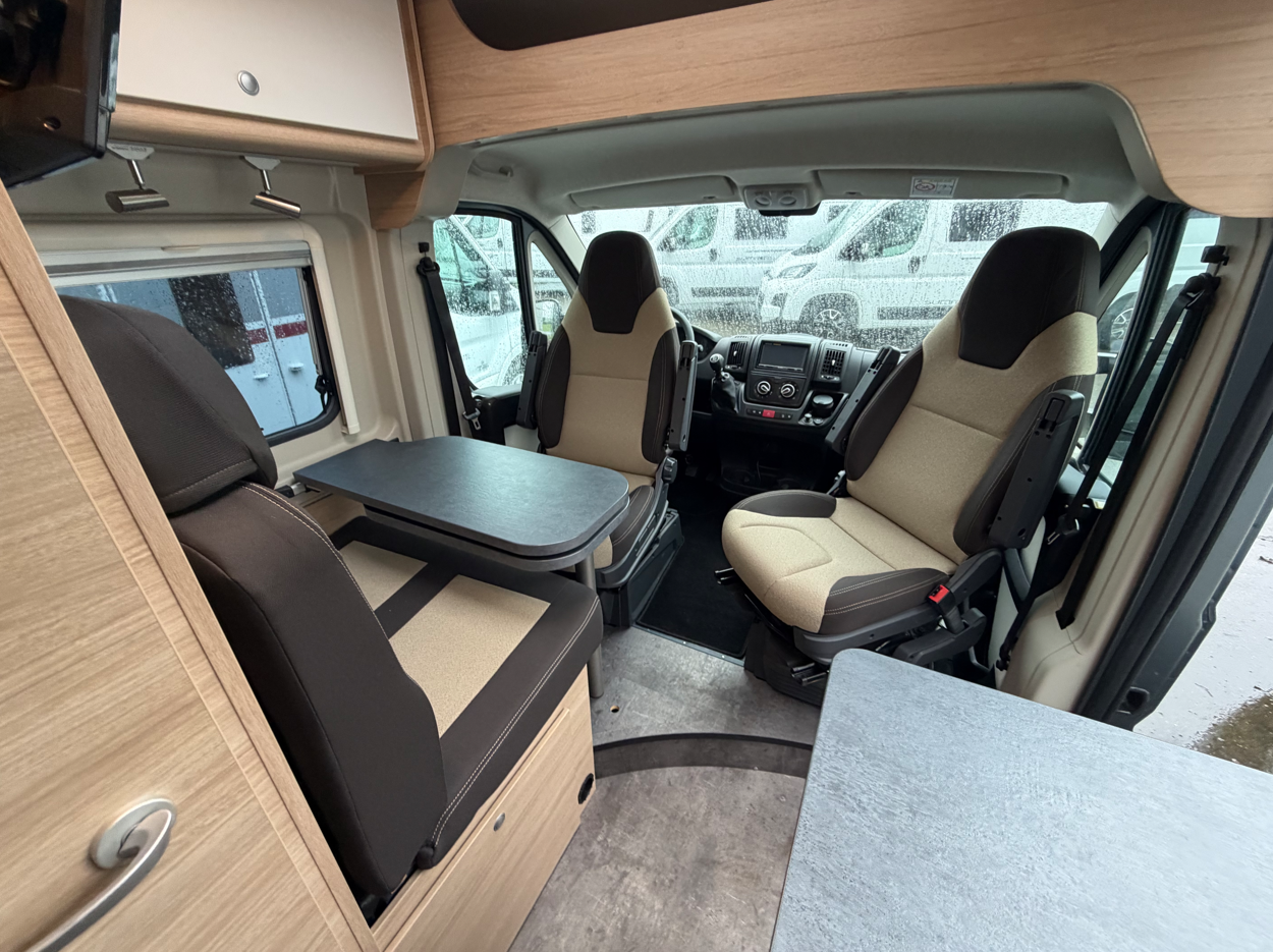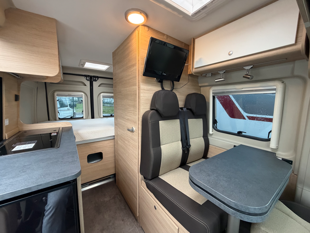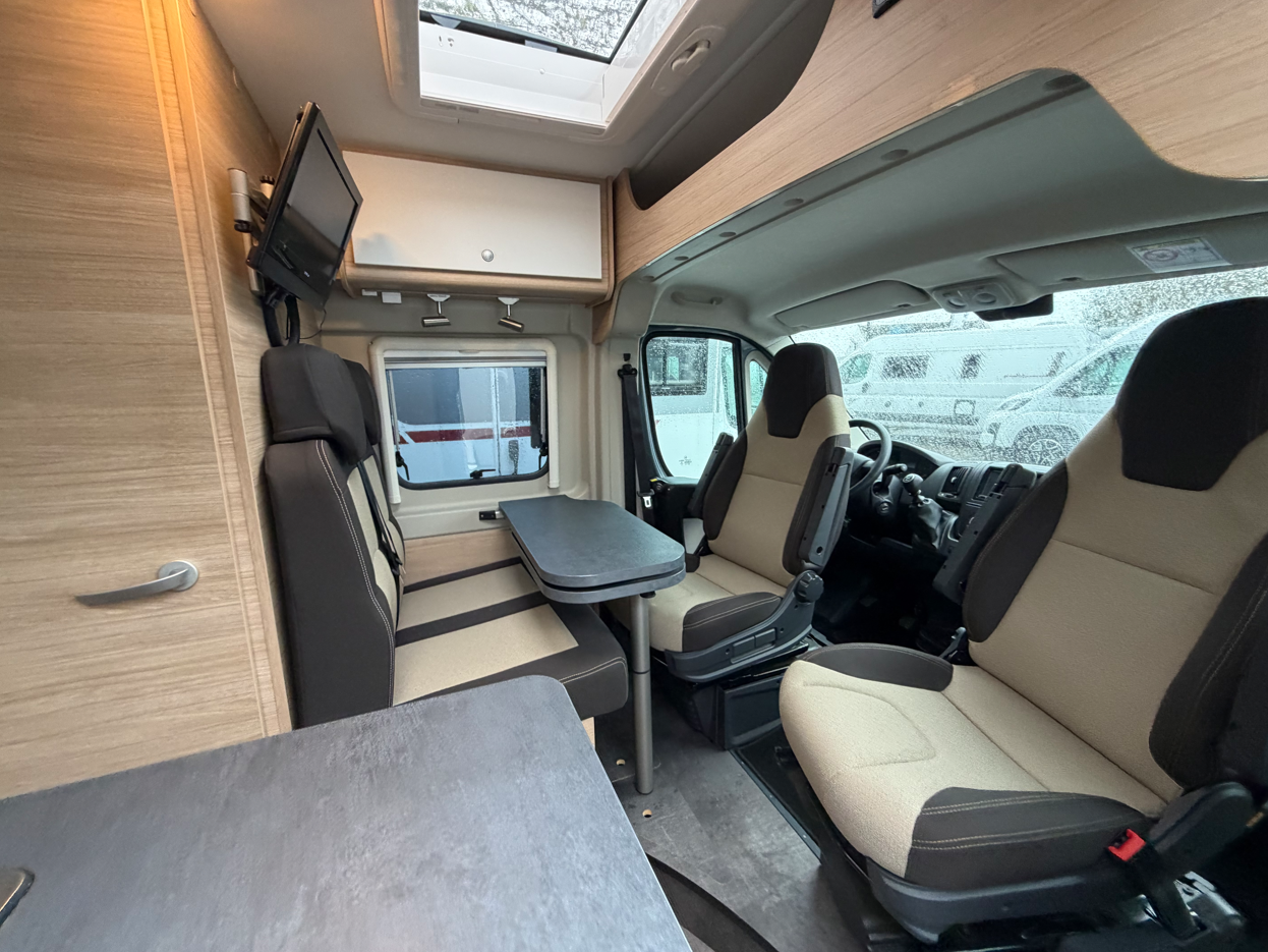 Camping Car profilé avec lit transversal + lit dinette, Dinette 4 places, Salle de bain avec douche et WC à cassette, Chauffe eau + chauffage combi TRUMA gaz , Nombreux rangements, Evier, Cuisine avec feux 2 gaz, Ouvrants avec moustiquaires + stores, Frigo avec freezeur à compression, Store extérieur, Panneau solaire, Antenne hertzienne avec TV, Attelage, Caméra de recul…